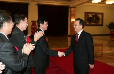 ▲时任国务院总理温家宝接见王广谦等教授