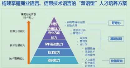 学院同时加大会计专业和新技术融合的研究,结合围绕构建掌握商业语言、信息技术语言的“双语型”人才培养方案,形成了契合新文科建设要求的“四融合一深化”的特色育人理念。
