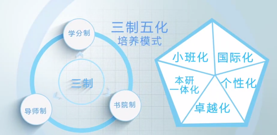 学院设立本研贯通培养体系的理工特色班与完全学分制培养模式的理工实验班和文科实验班,本研贯通培养体系保障荣誉学籍毕业生100%推荐免试“直博”或“硕博连读”研究生,完全学分制下学生可按个人志趣在全校40个专业自由选择,并由学院构建个性化培养方案。