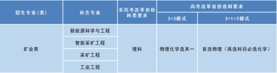 学院目前设有采矿工程,智能采矿工程,工业工程,新能源科学与工程4个本科专业。采矿工程专业所隶属的矿业工程学科在教育部五轮学科评估中均名列全国第一,在QS世界大学学科排名为第14名,中国第一。